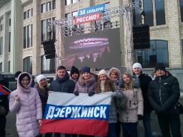 3 марта 2018 года молодежная делегация педагогических работников города Дзержинска приняла участие в митинге-концерте в поддержку кандидата в Президенты Российской Федерации Владимира Путина. Мероприятие проходило в Москве на стадионе «Лужники», куда съехались десятки тысяч людей из разных регионов страны, звезды эстрады, театра и кино, Олимпийские чемпионы. Кульминацией праздника стало выступление Владимира Путина.