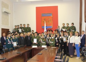 На прием были приглашены руководители и участники военно-патриотических объединений школ №№ 18, 20, 23, 24, 27, 30, 35, 40, гимназии № 38.